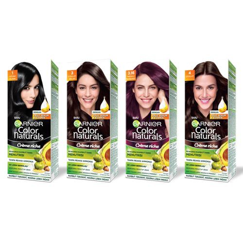 Gumash hair colour Loreal Shurah Garnier dan banyak lagi. Produk cat rambut Garnier Color Naturals ini adalah salah satu produk pewarna rambut yang bisa menutrisi rambutmu. Namun jika kamu ingin menutupi uban atau memberi warna rambut agar terlihat lebih.
